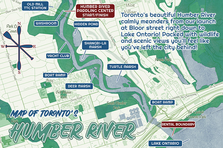 - Brief orientation covering paddling safety, Toronto Adventures’ rules, and the Humber River paddling route